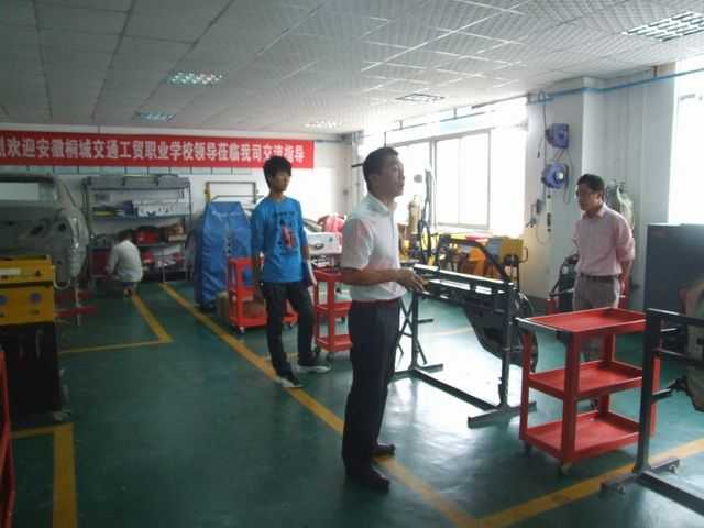 10月26日,安徽桐城交通工貿(mào)職業(yè)學(xué)校領(lǐng)導(dǎo)蒞臨龍神公司,歡迎會(huì)上交流有利于汽車(chē)后市場(chǎng)發(fā)展前景的意見(jiàn),隨后參觀了我司鈑噴培訓(xùn)中心,和我司培訓(xùn)部專(zhuān)業(yè)老師學(xué)習(xí)交流汽車(chē)鈑金與噴漆的教學(xué)方法與汽車(chē)維修、美容設(shè)備的正確使用方法。