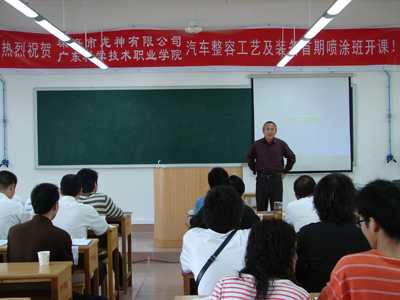 由珠海市龍神有限公司與廣東科學(xué)技術(shù)職業(yè)學(xué)院共同舉辦的“汽車涂裝技術(shù)及裝備”首期免費(fèi)培訓(xùn)班,于2007年4月16日順利開課。