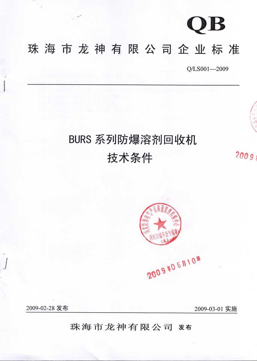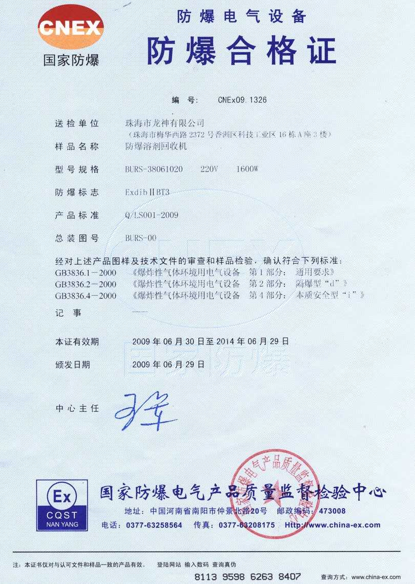 防爆認證 防爆溶劑回收機防爆合格證 BURS系列防爆溶劑回收機技術(shù)條件 BURS-38061020型防爆溶劑回收機 使用說明書 BURS-38061020型防爆溶劑回收機 圖紙資料 (以上圖片均可點擊放大) 2012-11-27 34812
