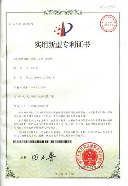 ![]() 噴槍清洗機(jī)專利證書 | ![]() 無靜電干燥加熱器專利證書 |
