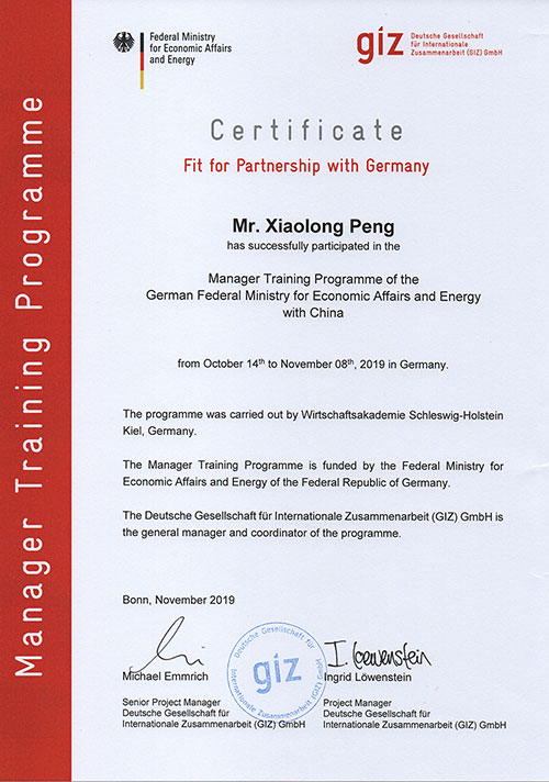 彭小龍總經(jīng)理證書 | |