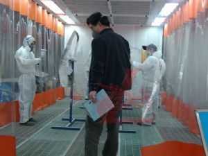 參賽選手使用龍神贊助的油漆色樣烤箱和對色燈箱進(jìn)行調(diào)漆對色